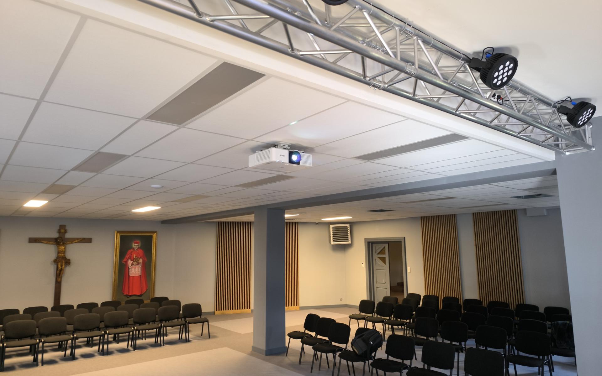 Nagłaśniana przestrzeń służy do odprawiania mszy oraz prowadzenia spotkań.