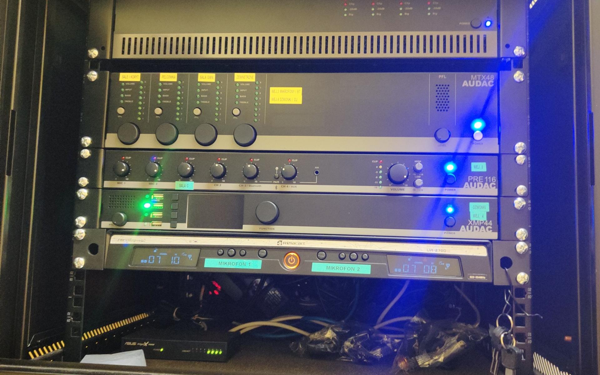 - Zarządzanie i moc: AUDAC (MTX48, CAP448, PRE116, XMP44)