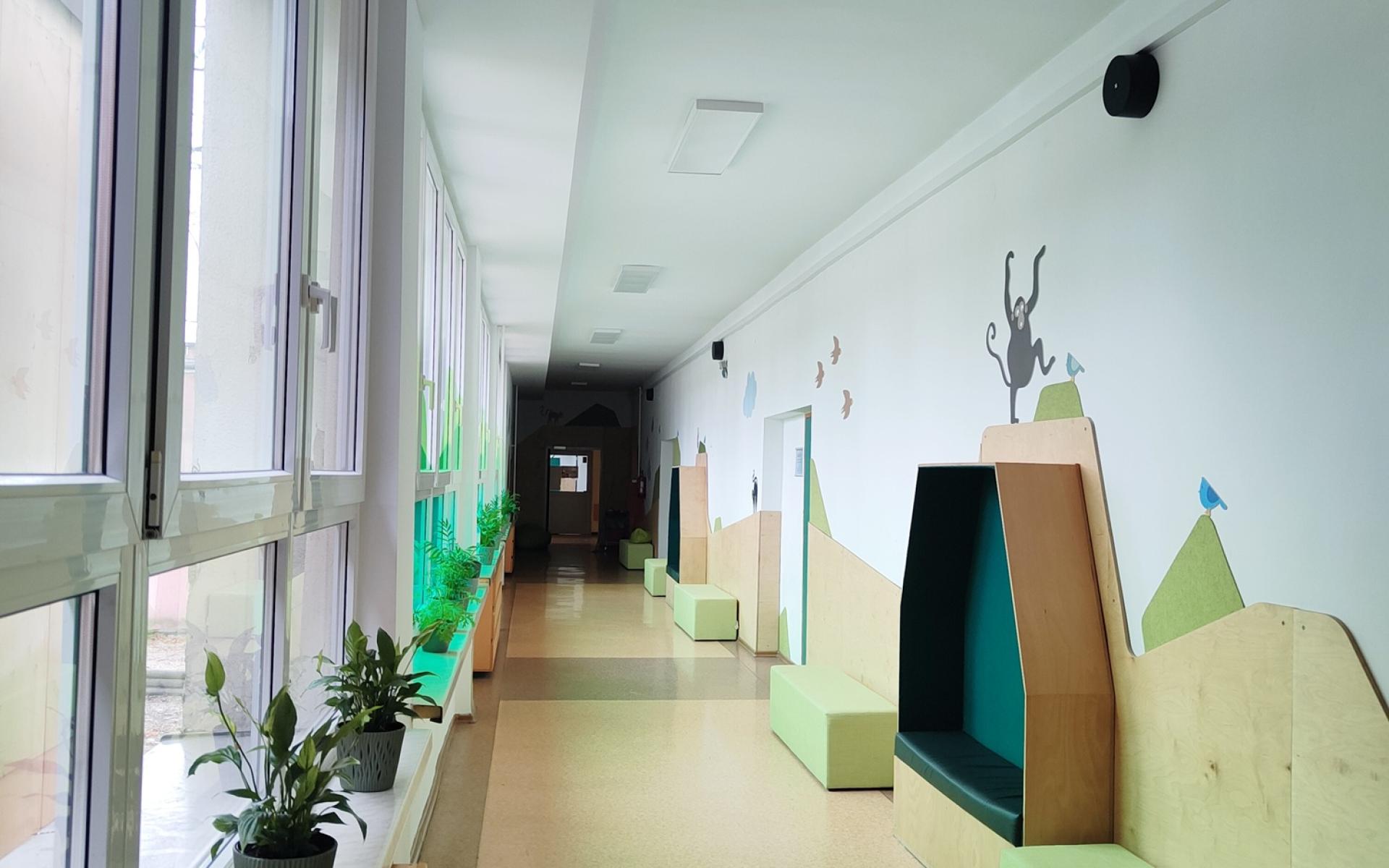 - Nagłośnienie korytarzy i sal: Wykorzystaliśmy ponad 50 głośników naściennych AUDAC NELO706 w eleganckim czarnym kolorze. Ich konstrukcja zapewnia doskonałą zrozumiałość mowy, co jest kluczowe w szkolnym gwarze.